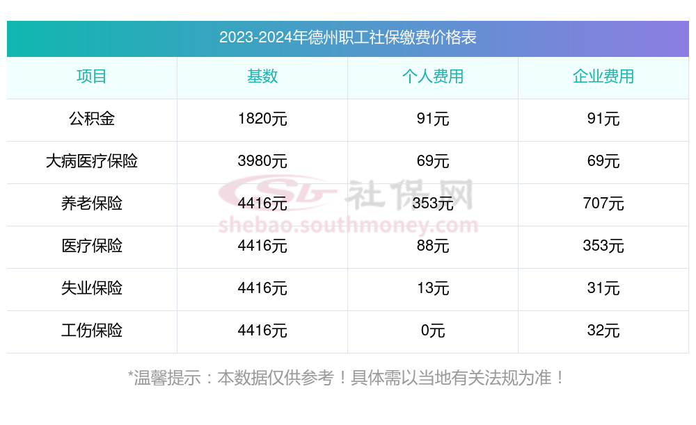 德州社保缴纳情况是怎样的?一起和新社通一起来看看下面的明细表: