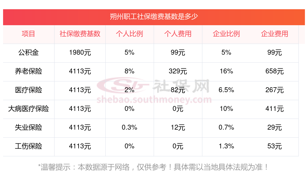 朔州社保缴纳情况是怎样的?一起和新社APP一起来看看下面的明细表: