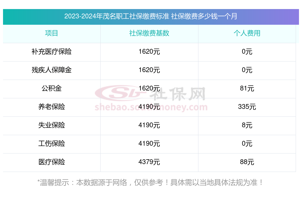 茂名社保缴纳情况是怎样的?一起和新社小编一起来看看下面的明细表:
