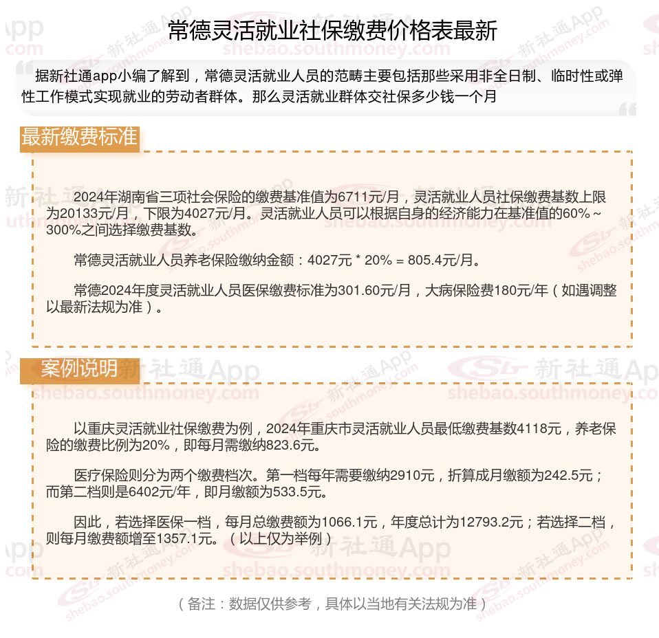 常德2024年度灵活就业人员医保缴费标准为301.60元/月,大病保险费180元/年(如遇调整以最新法规为准)。