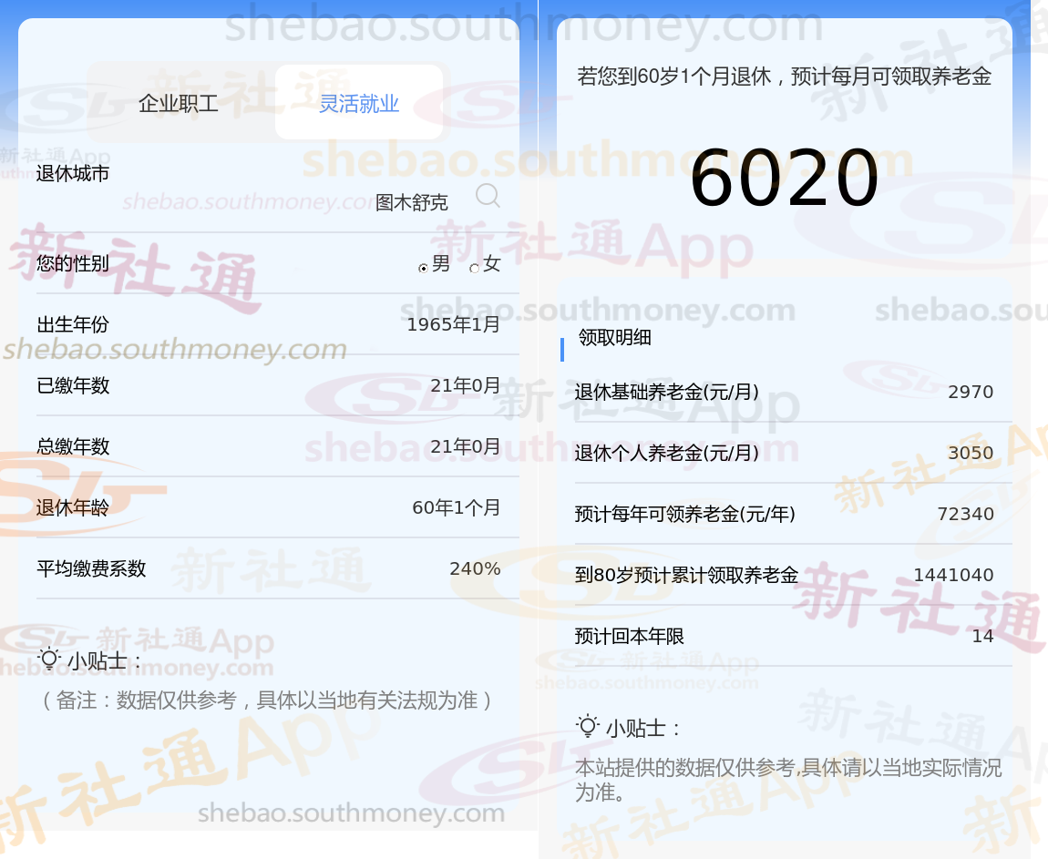 刘某,他选择了按照240%的比例缴纳灵活就业社保。经过21年的积累。今年,1965年出生准备退休,他自己做了一个简单的计算,发现按照这个领取速度,大约14年多的时间就能收回之前投入的社保费用。