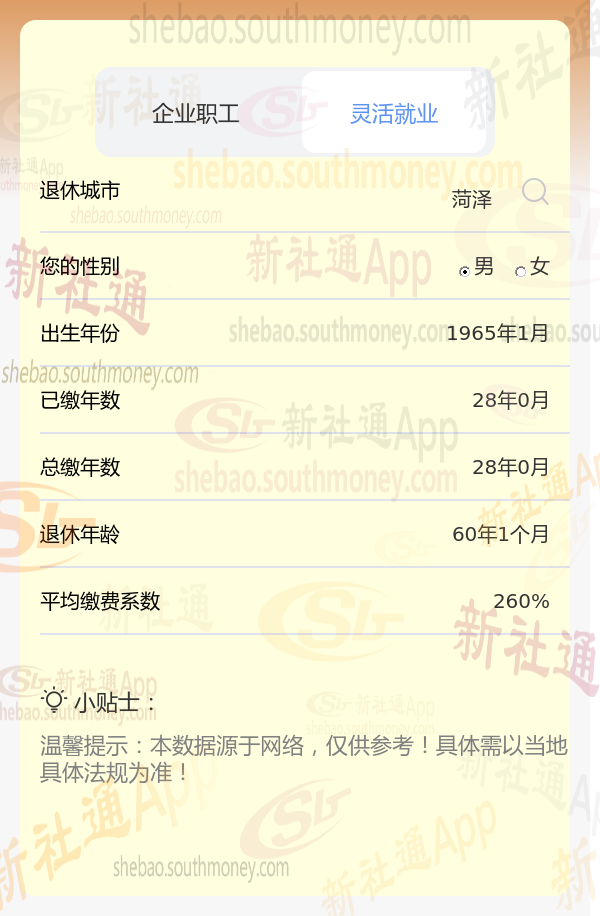 新社通app养老金计算器计算所得: