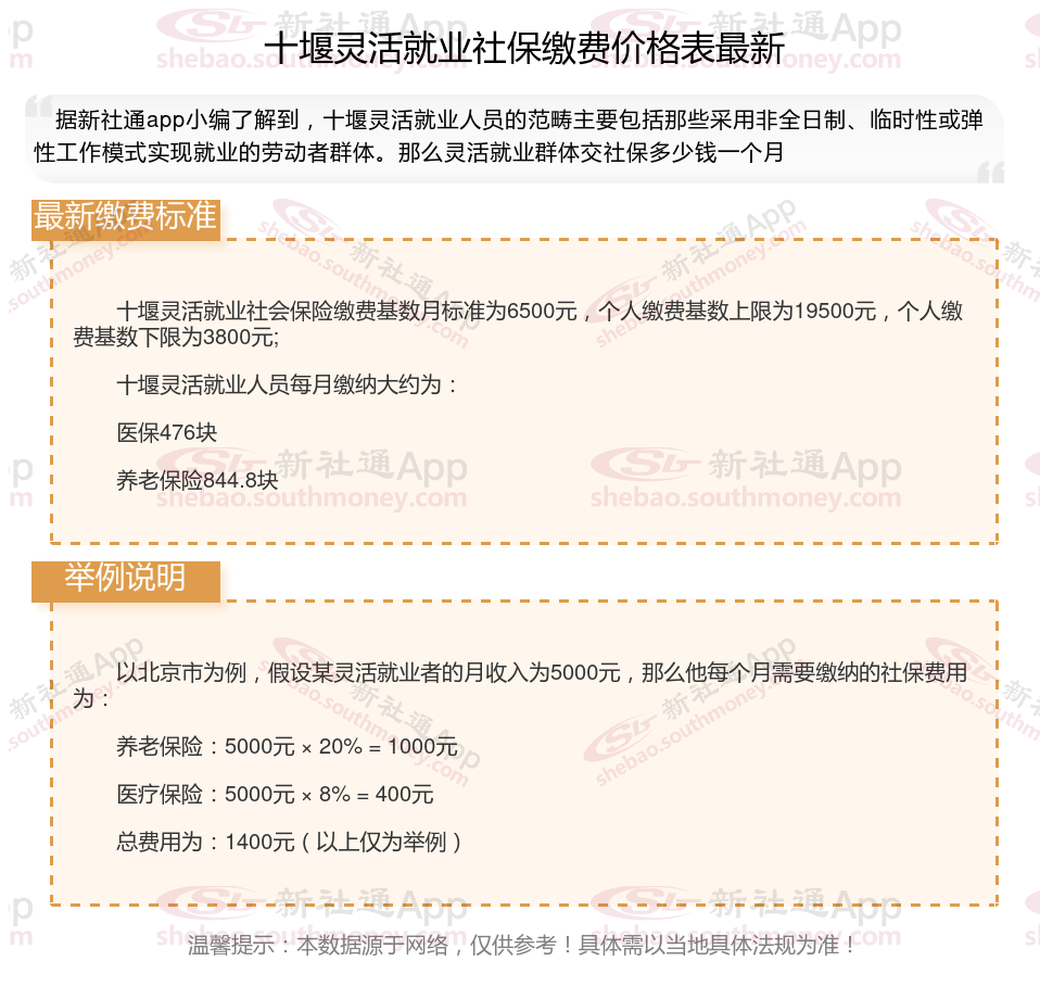 十堰灵活就业社会保险缴费基数月标准为6500元,个人缴费基数上限为19500元,个人缴费基数下限为3800元;