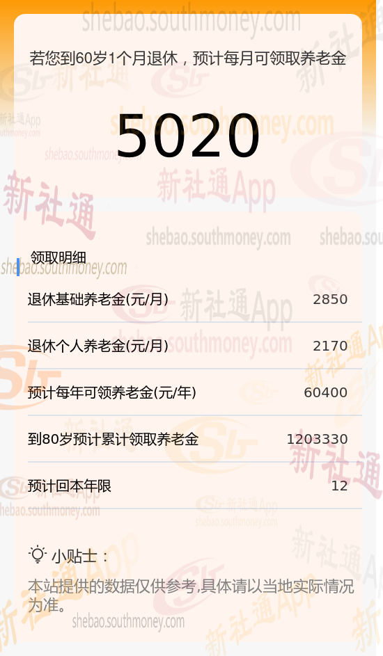杨某,常州人,1965年出生,是一名拥有25载社保缴费年限的退休男性,缴费档次稳定在160%。岁月流转,他终于迎来了自己的退休时光。借助新社通app养老金在线计算器计算所得: