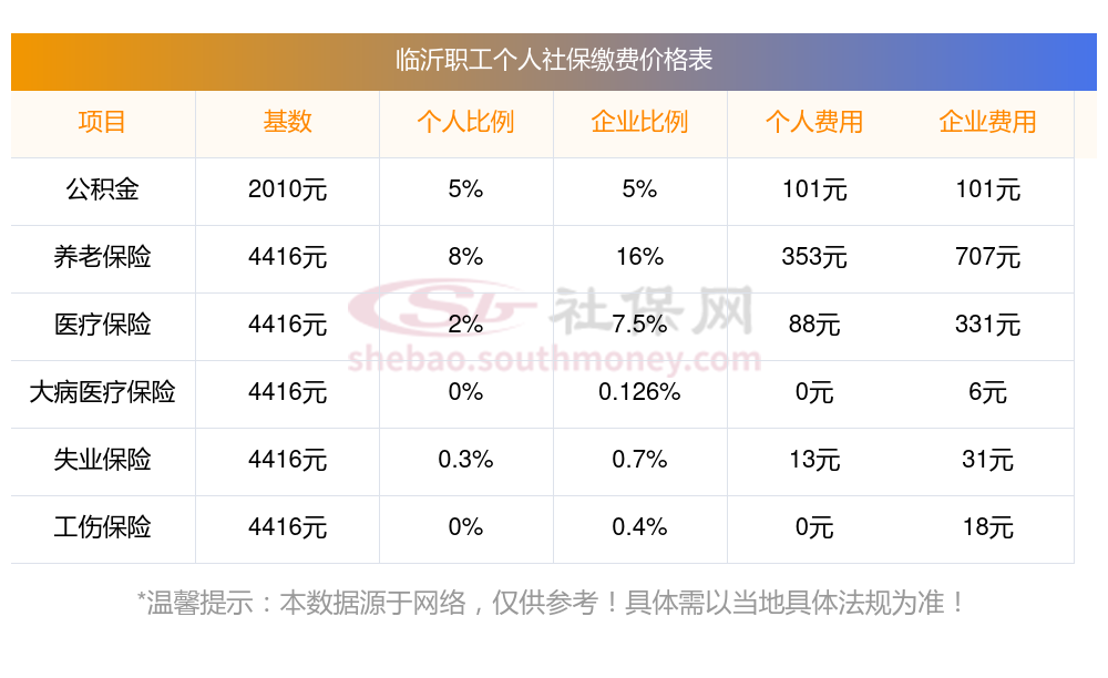 临沂社保缴纳情况是怎样的?一起和新社通-app小编一起来看看下面的明细表: