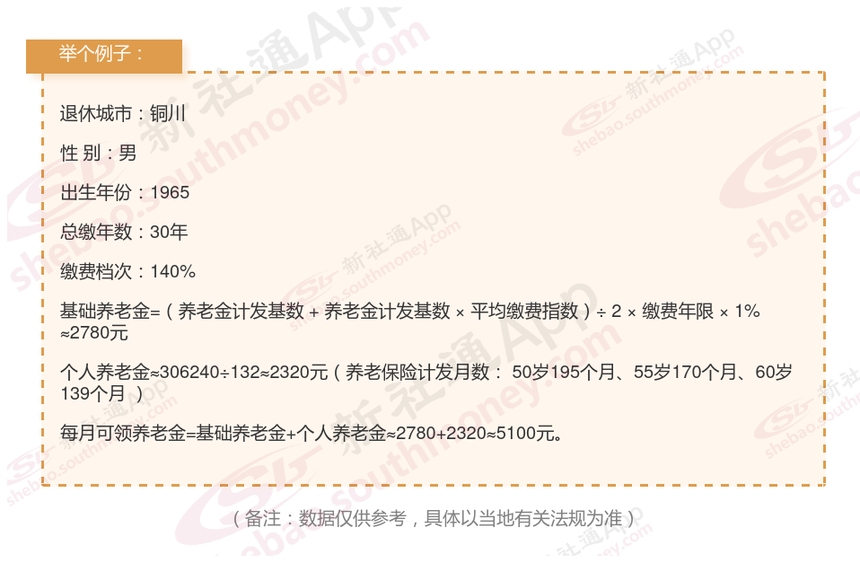 每月可领养老金=基础养老金+个人养老金≈2780+2320≈5100元。