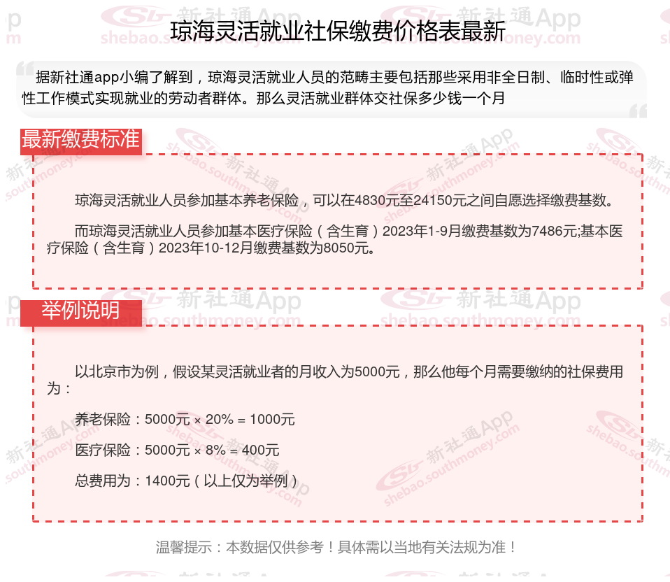 据新社通app数据显示,琼海灵活就业养老缴费基数明细如下: