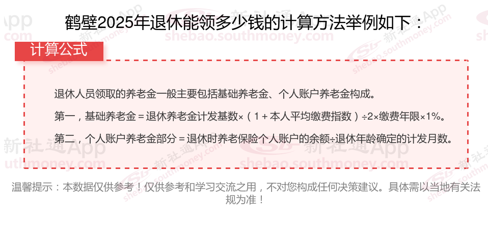 基本养老金=(退休时上年度全市城镇单位就业人员月平均工资+本人指数化月平均缴费工资)÷2×缴费年限×1%。
