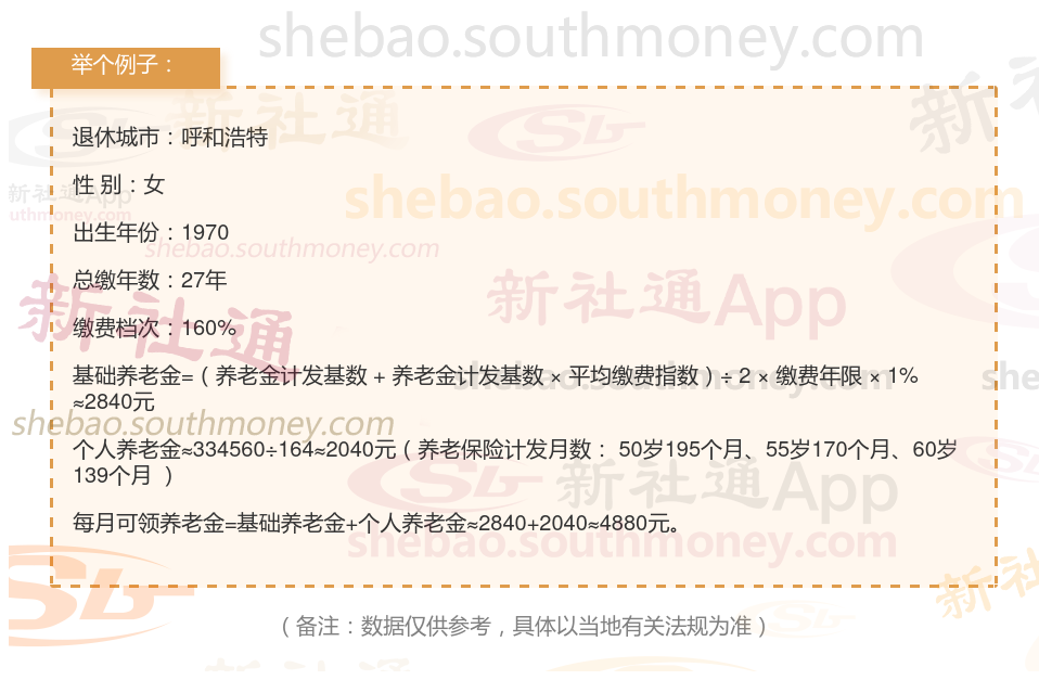 个人档案:女性,1970年出生,呼和浩特退休职工,社保缴费27载,档次160%。