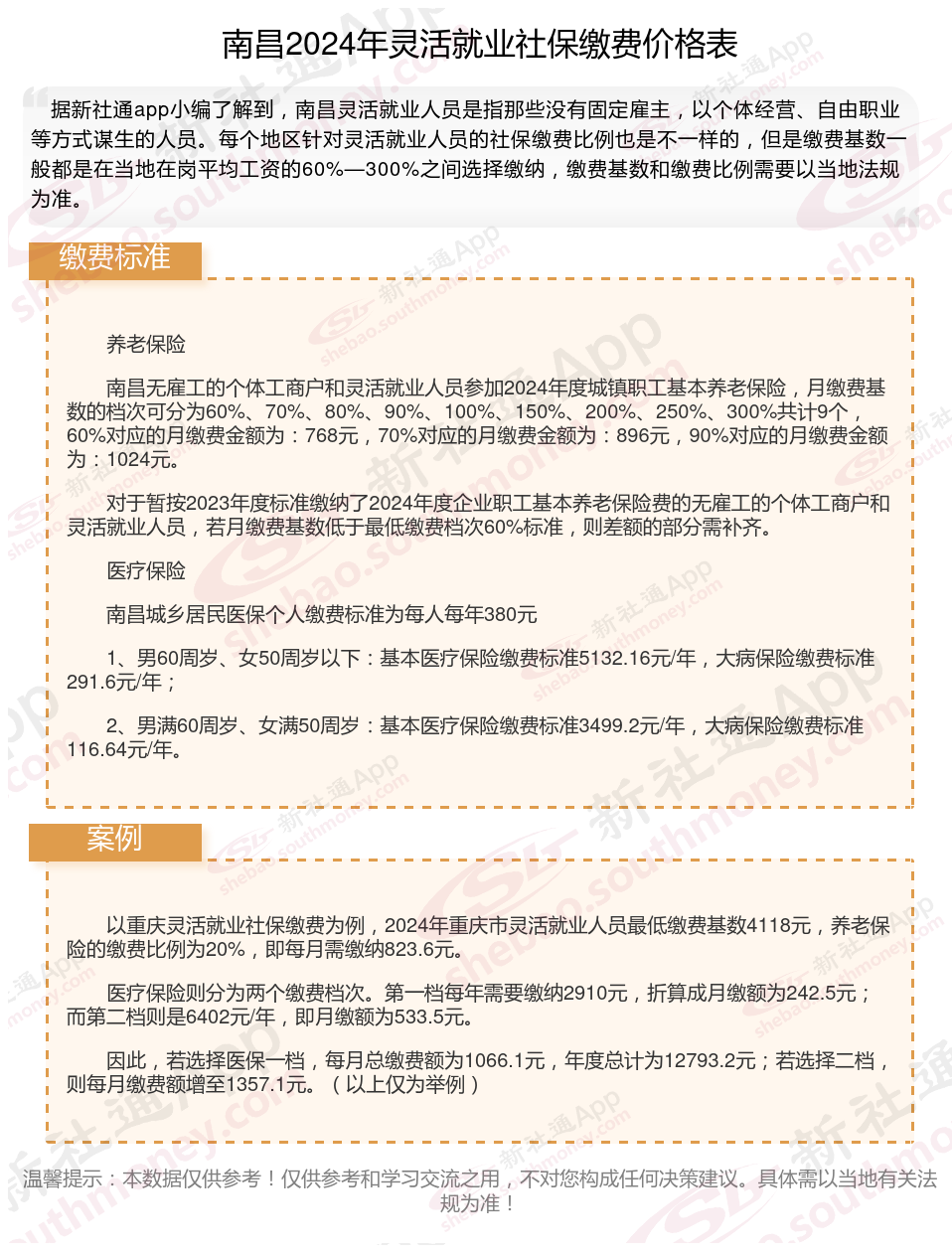 南昌灵活就业人员基本养老保险缴费基数暂按不低于3839元;
