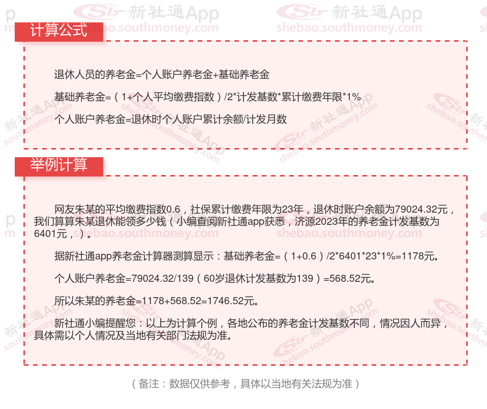 基础养老金=(参保退休时本省上一年度在岗职工月平均工资+本人指数化月平均工缴费工资)÷2×缴费年限×1%。