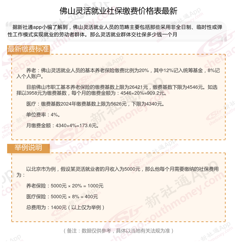 佛山灵活就业人员基本养老保险缴费基数暂按不低于4546元;