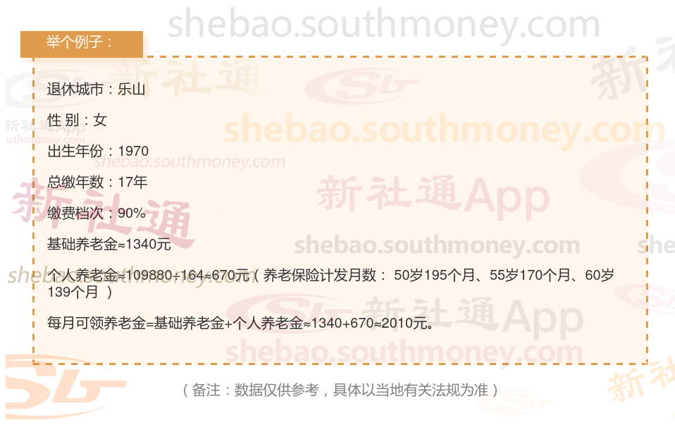 新社通app养老金计算器计算所得: