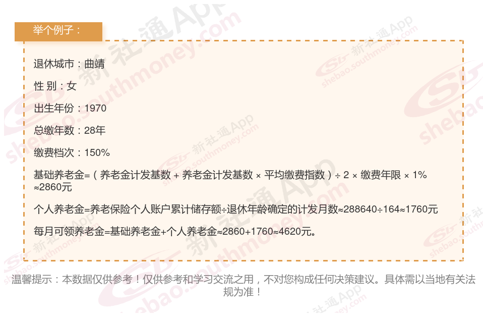 夏某,1970年出生于曲靖,是一位拥有28年社保缴费记录的退休职工,缴费档次为150%。辛勤工作多年后,她迎来了退休生活。通过新社通app养老金计算器计算所得,夏某得知自己每月可以领取到基础养老金约2860元,加上个人养老金约1760元,总计4620元。虽然金额不算多,但对于夏某来说,这是一份稳定的收入来源,为她的退休生活增添了一份安心与保证。