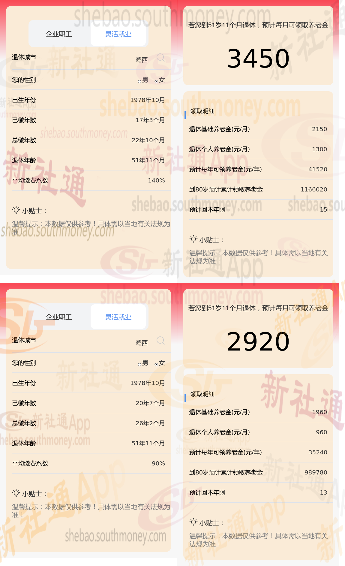下面新社通小编一起来看下,以鸡西为例(不考虑过渡养老金):
