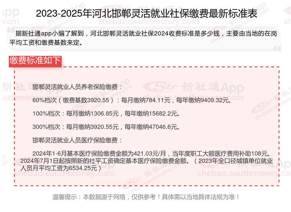 河北邯郸灵活就业人员基本养老保险缴费基数暂按不低于3920.55元;