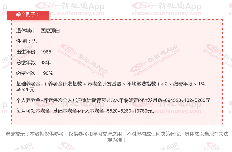 社保按190%档次缴费的希某,西藏那曲城市退休,出生于1965年,工龄33年,男性。岁月流转,他终于迎来了自己的退休年龄。