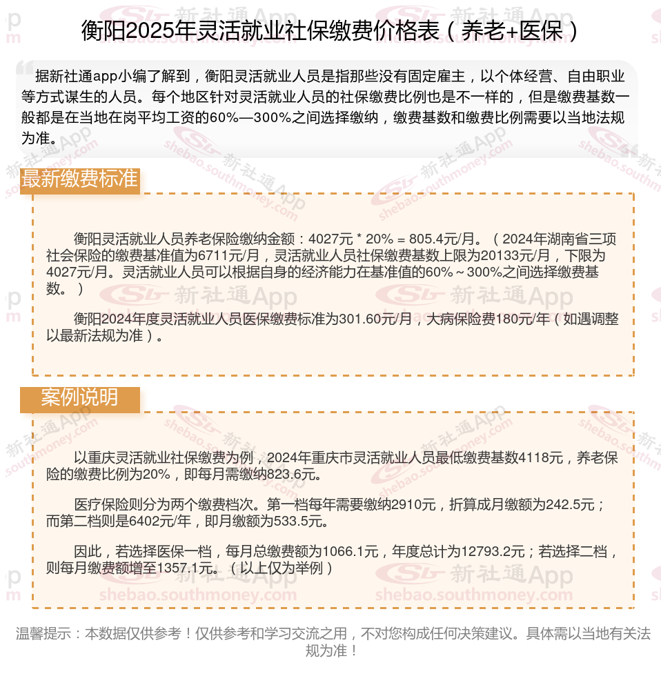 据新社通app数据显示,2024-2025年衡阳灵活就业人员养老保险的缴费标准:
