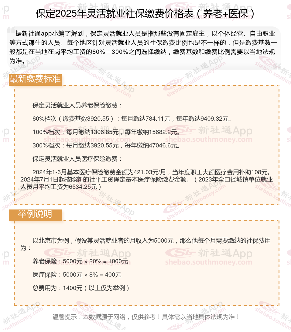保定灵活就业自己交社保一个月要交多少钱?根据新社通app-社保缴费查询工具提供的最新数据如下: