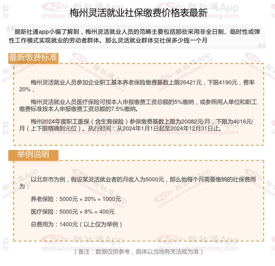 据新社通app数据显示,梅州灵活就业养老保险最低缴费基数为:4190元;个人的缴费比例分别为:20%;
