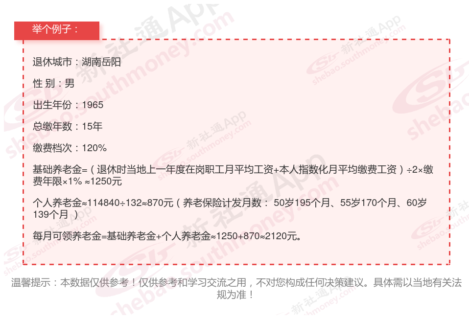 下面随着新社通APP一起来看看,湖南岳阳交15年养老保险每个月能领多少?
