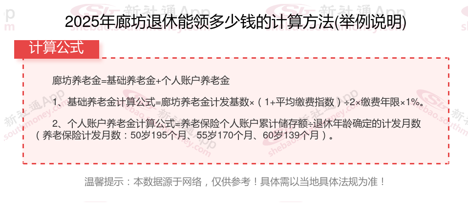 先来了解一下,2025年廊坊养老金计算公式,查阅新社通app显示: