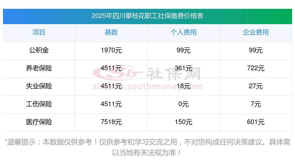 四川攀枝花社保缴纳情况是怎样的?一起和新社通小编一起来看看下面的明细表: