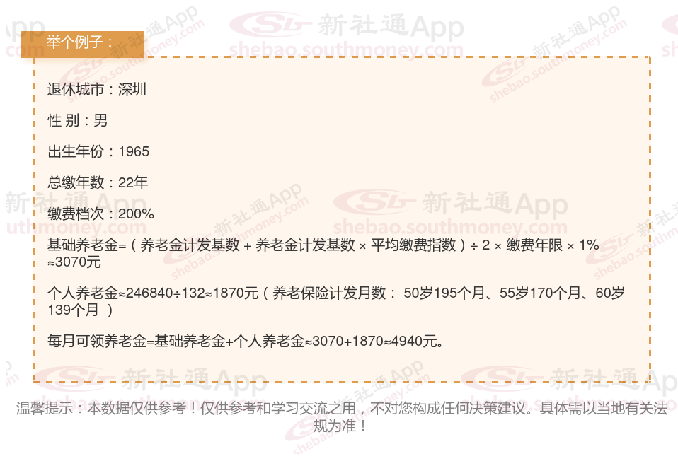 退休城市:深圳,性别:男,出生年份:1965,总缴年数22年,缴费档次:200%