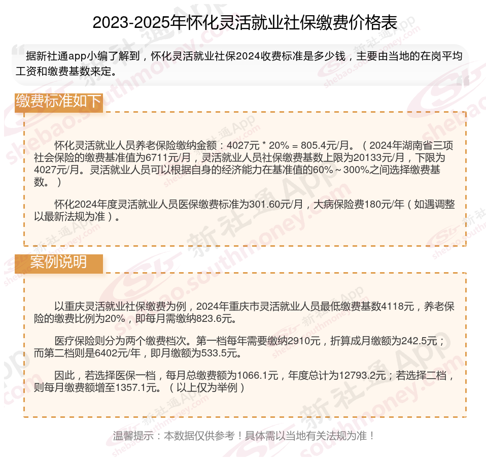 据新社通app数据显示,怀化灵活就业养老保险缴费基数2024-2025年最新标准如下: