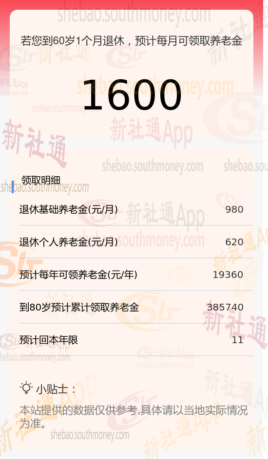 夏某,抚州人,1965年出生,是一名拥有15载社保缴费年限的退休男性,缴费档次稳定在90%。岁月流转,他终于迎来了自己的退休时光。借助新社通app养老金计算器计算所得,夏某惊喜地发现,他每月可以领取到基础养老金大约980元,再加上个人养老金约620元,两项合计,他每月的养老金总额达到了1600元。虽然数额不大,但足以让他的退休生活充满温馨与安宁。