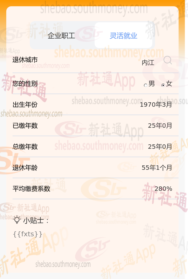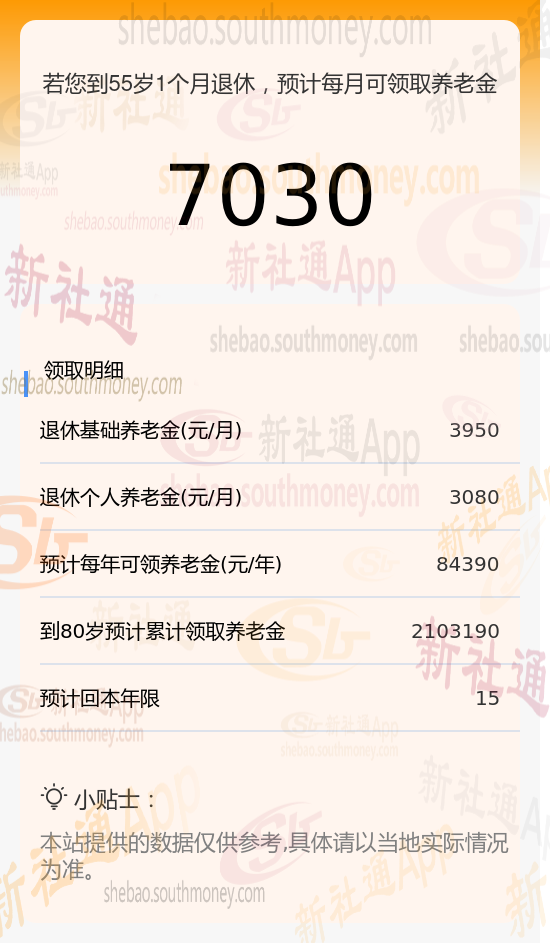 新社通app养老金计算器计算所得: