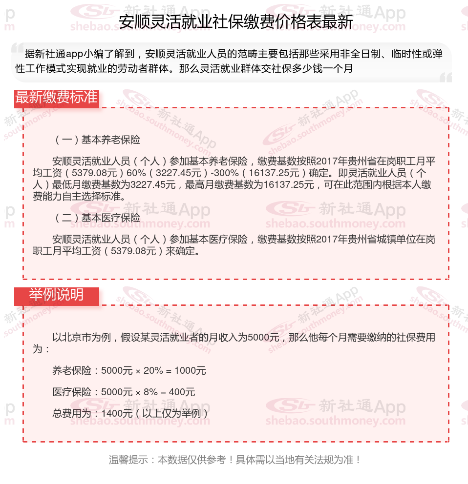 安顺社保缴费多少钱?下表是2024-2025年安顺社保费用明细参考,根据新社通app-社保缴费查询工具提供的最新数据如下: