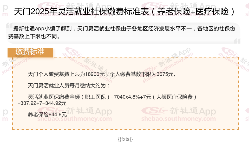 那么,天门自由职业者社保一个月多少钱?根据新社通app-社保缴费查询工具提供的2025社保缴费标准详情数据: