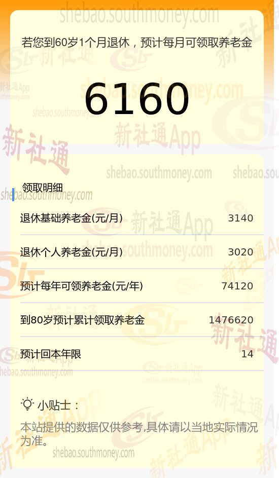 每月退休金总额=3140+3020=6160元/月。虽然数额不大,但足以让他的退休生活很惬意。