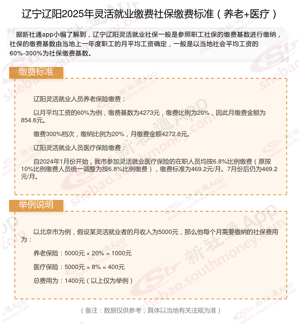 辽宁辽阳社保缴费多少钱?下表是2024-2025年辽宁辽阳社保费用明细参考,根据新社通app-社保缴费查询工具提供的最新数据如下: