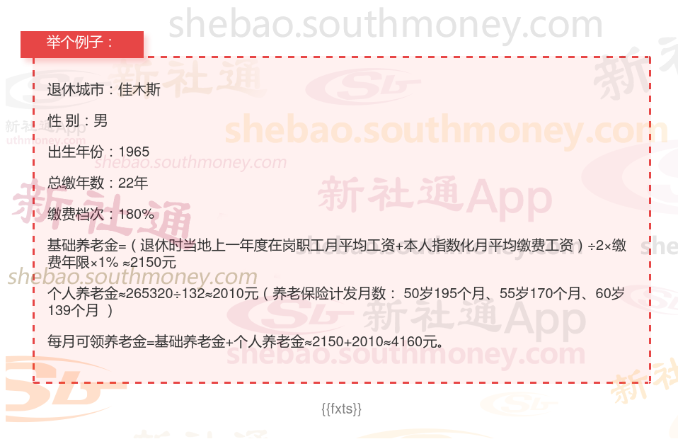 社保按180%档次缴费的秦某,佳木斯城市退休,出生于1965年,工龄22年,男性。岁月流转,他终于迎来了自己的退休年龄。根据新社通app养老金在线计算器计算所得: