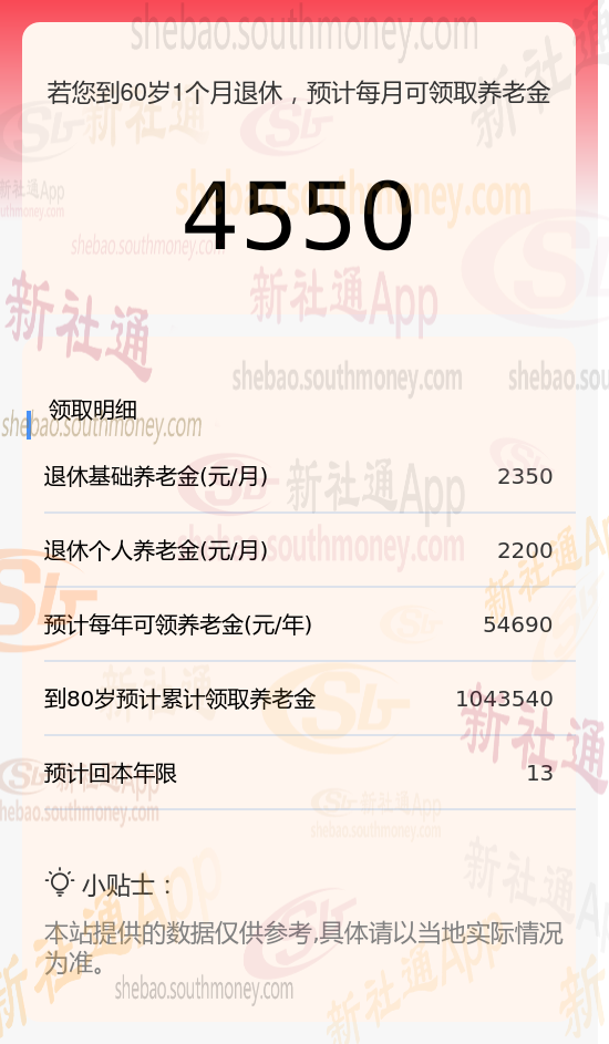 新社通app养老金计算器养老金估算详解