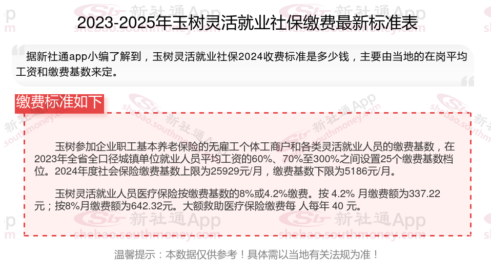 自由职业缴纳社会保险,一般需要交多少钱一个月?根据新社通app-社保缴费查询工具提供的2025社保缴费标准详情数据: