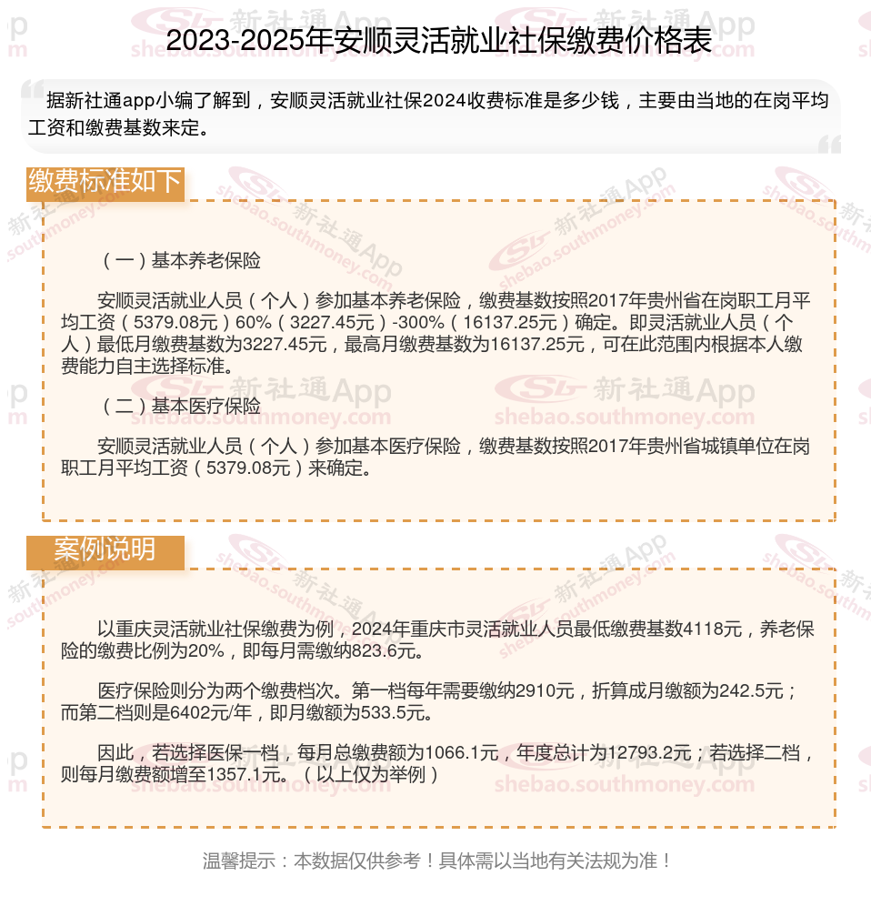 安顺社保缴费多少钱?下表是2024-2025年安顺社保费用明细参考,根据新社通app-社保缴费查询工具提供的最新数据如下: