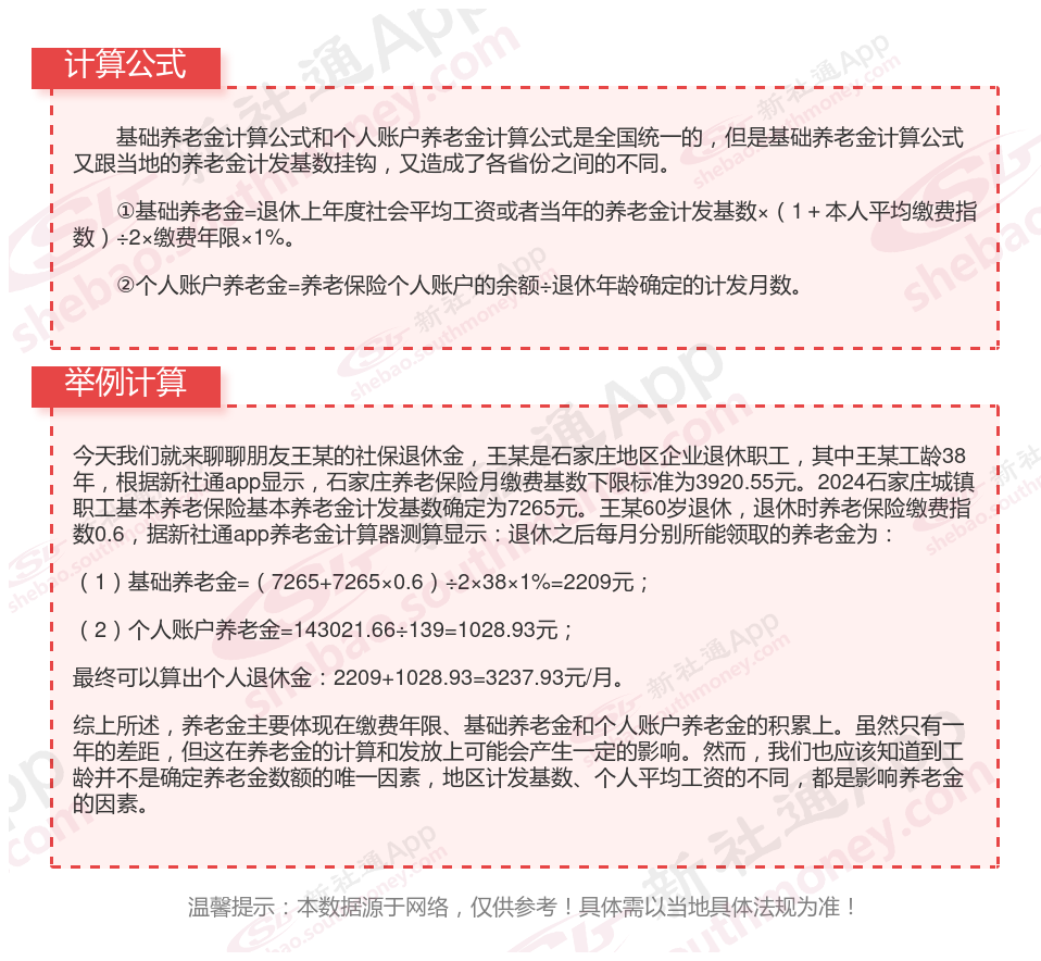 基础养老金=(全省上年度在岗职工月平均工资+本人指数化月平均缴费工资)÷2×缴费年限×1%=全省上年度在岗职工月平均工资(1+本人平均缴费指数)÷2×缴费年限×1%。