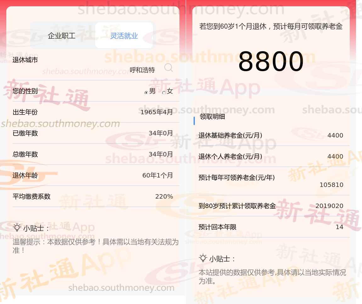 朱某,他一直以来都坚持按照220%的比例来缴纳灵活就业社保。34年来,他为自己的未来储备下了一笔社保基金。今年,他迎来了退休年龄,并开始享受起了社保带来的福利—每月可以领取大约到8800元的养老金。他自己细细算了一笔账,发现按照这个养老金的发放标准,仅仅需要14年多的时间,就能完全收回之前所投入的社保成本。