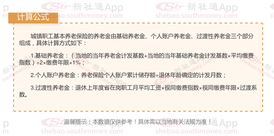 基础养老金为:上一年退休地在岗职工月平均工资(1个人平均缴费指数)÷2×累计缴费年限(含视为缴费年限)×1%。