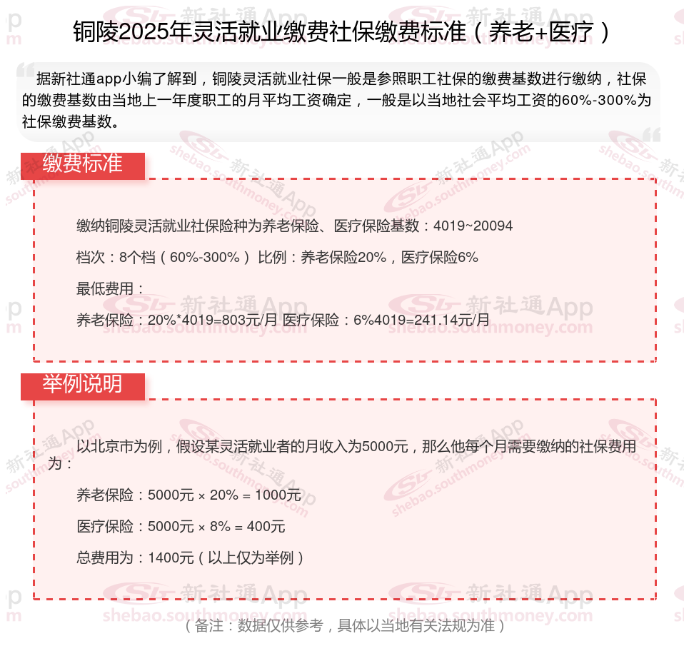 据新社通app数据显示,铜陵灵活就业人员养老缴费基数2024-2025年最新标准如下: