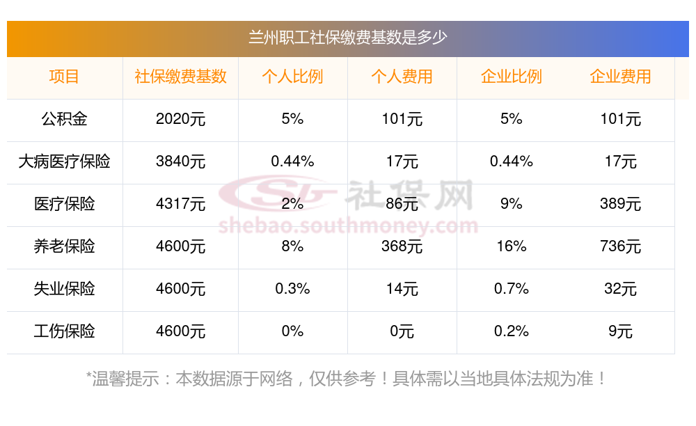 兰州社保缴纳情况是怎样的?一起和新社通一起来看看下面的明细表: