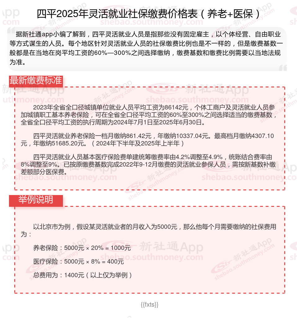 那么,四平自己社保一个月多少钱?根据新社通app-社保缴费查询工具提供的2025社保缴费标准详情数据: