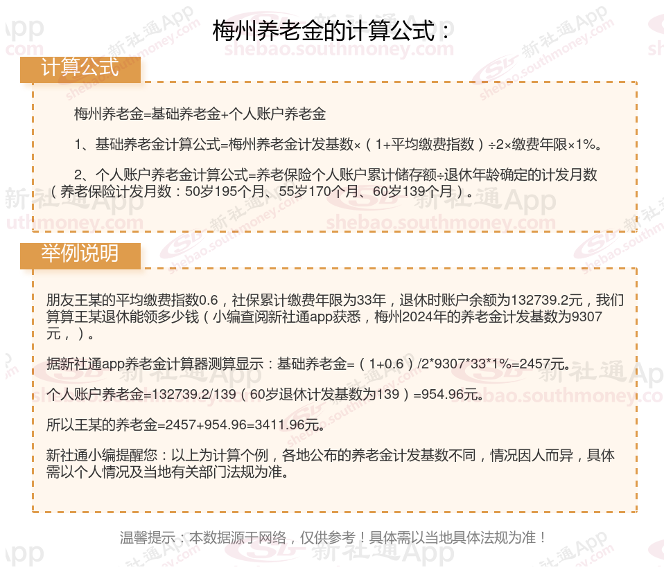 基本养老金计算公式为:(退休时上年度全市城镇单位就业人员月平均工资+本人指数化月平均缴费工资)÷2×缴费年限×1%。