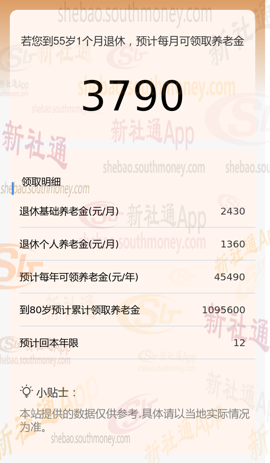 新社通app养老金计算器计算所得: