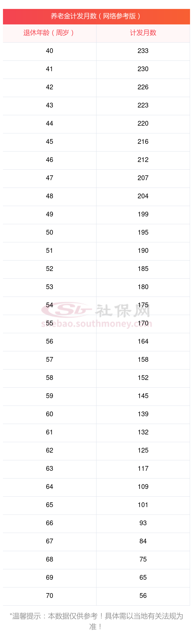 个人账户养老金=个人账户储存额÷计发月数(计发月数根据退休年龄和当时的人口平均寿命来确定。计发月数略等于(人口平均寿命-退休年龄)X12。目前50岁为195、55岁为170、60岁为139,不再统一是120了)。
