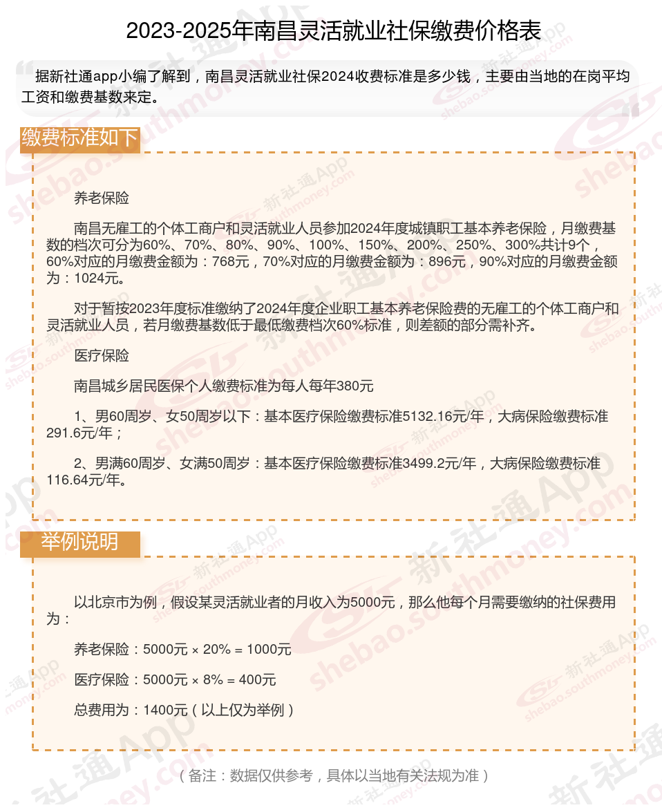 据新社通app数据显示,南昌灵活就业养老保险缴费基数2024-2025年最新标准如下: