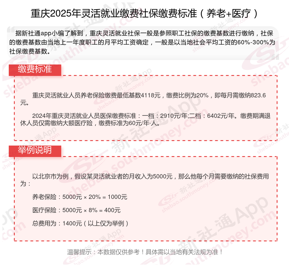 据新社通app数据显示,重庆企业灵活就业养老保险的缴费基数为:4359元。